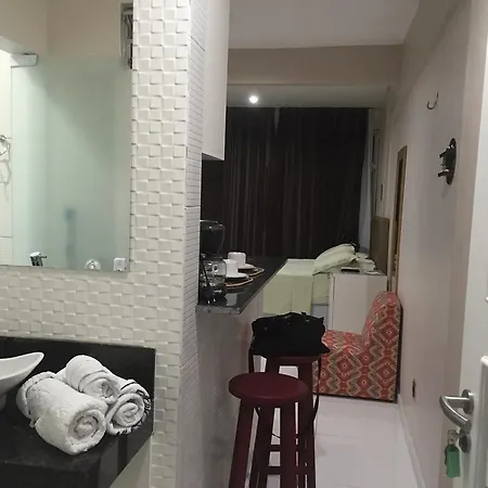 O apartamento dispõe de cozinha totalmente equipada com microondas, chaleira elétrica e refrigerador, juntamente com frigobar e máquinas de café/chá.